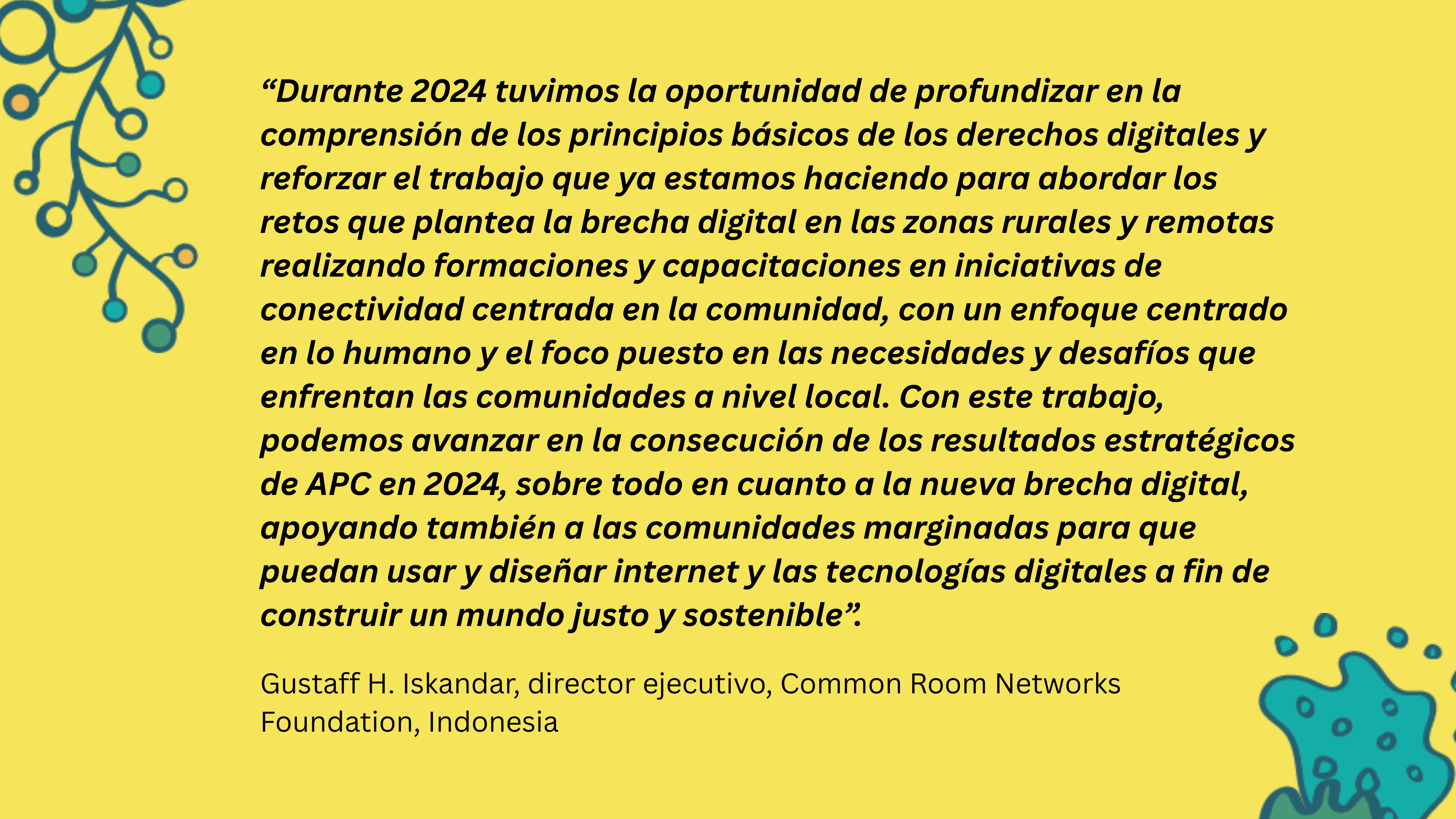 Recientemente publicamos nuestro último informe anual, en el que destacamos el impacto que ha tenido el trabajo de la comunidad de APC a lo largo de 2024, que fue el primer año de implementación del nuevo plan estratégico que guiará nuestro quehacer hasta 2027.